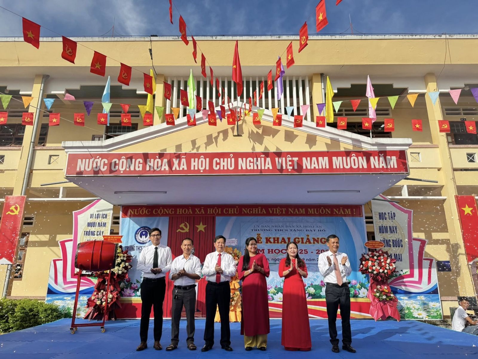 Tại điểm Trường THCS Tăng Bạt Hổ hân hoan khai giảng năm học mới. Đến dự và chúc mừng lễ khai giảng năm học 2025-2026 có đồng chí Rơ Chăm H’Hồng – Tỉnh ủy viên, Phó Chủ tịch UBMTTQ Việt Nam tỉnh, Chủ tịch Hội Nông dân tỉnh. Ở xã có đồng chí Hoàng Anh Ngọc – CT UBND xã, cán bộ, giáo viên và học sinh toàn trường.