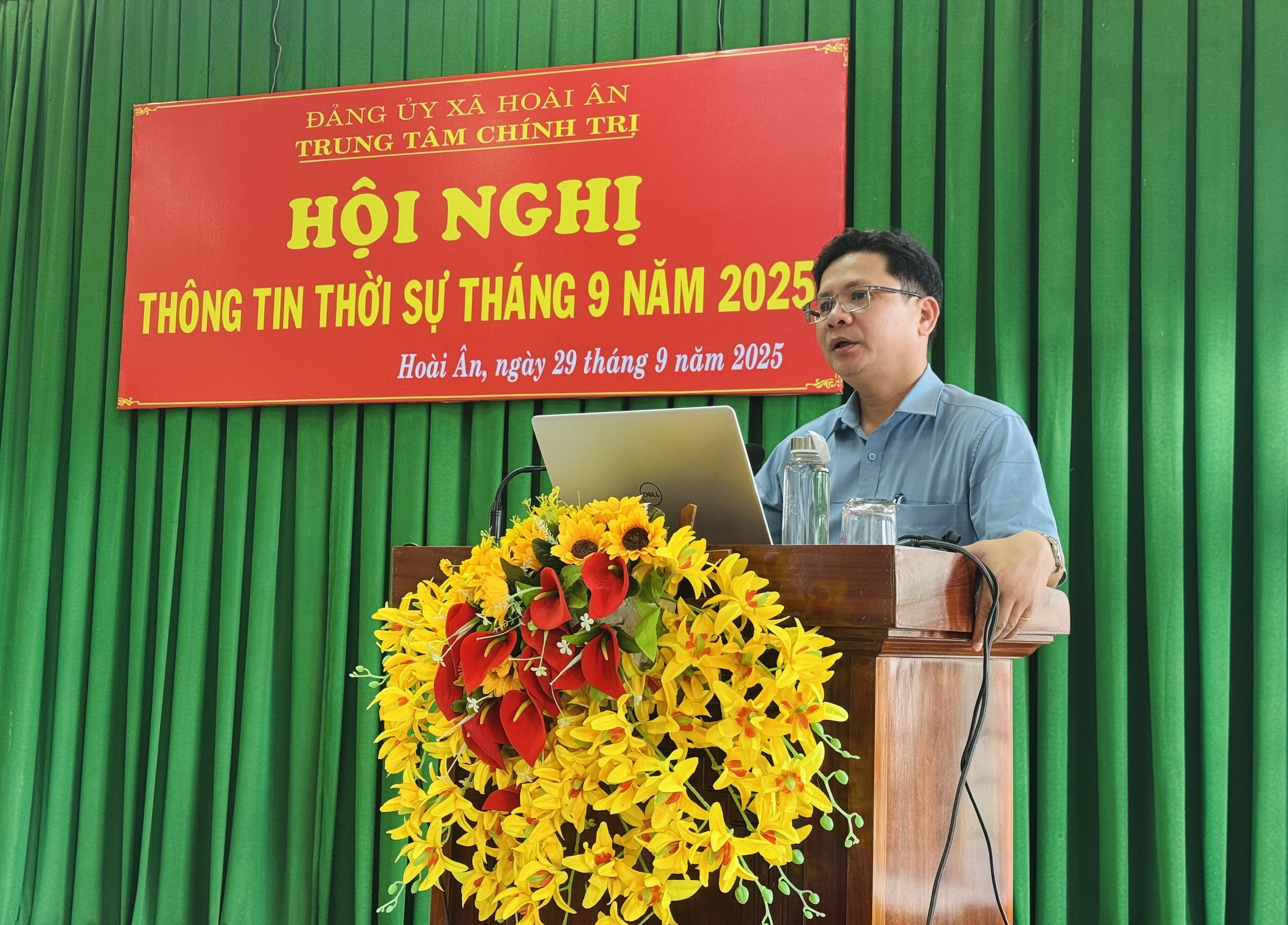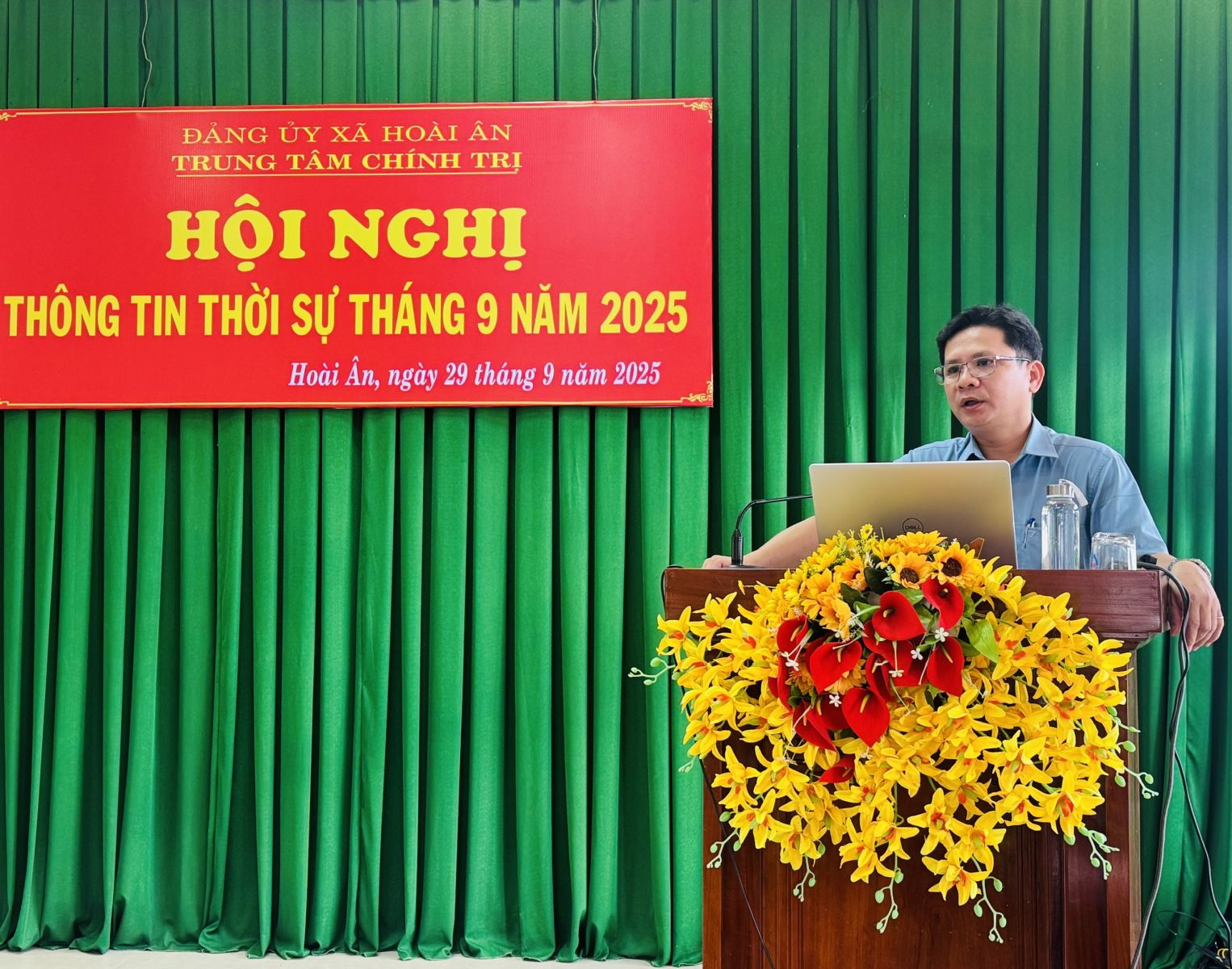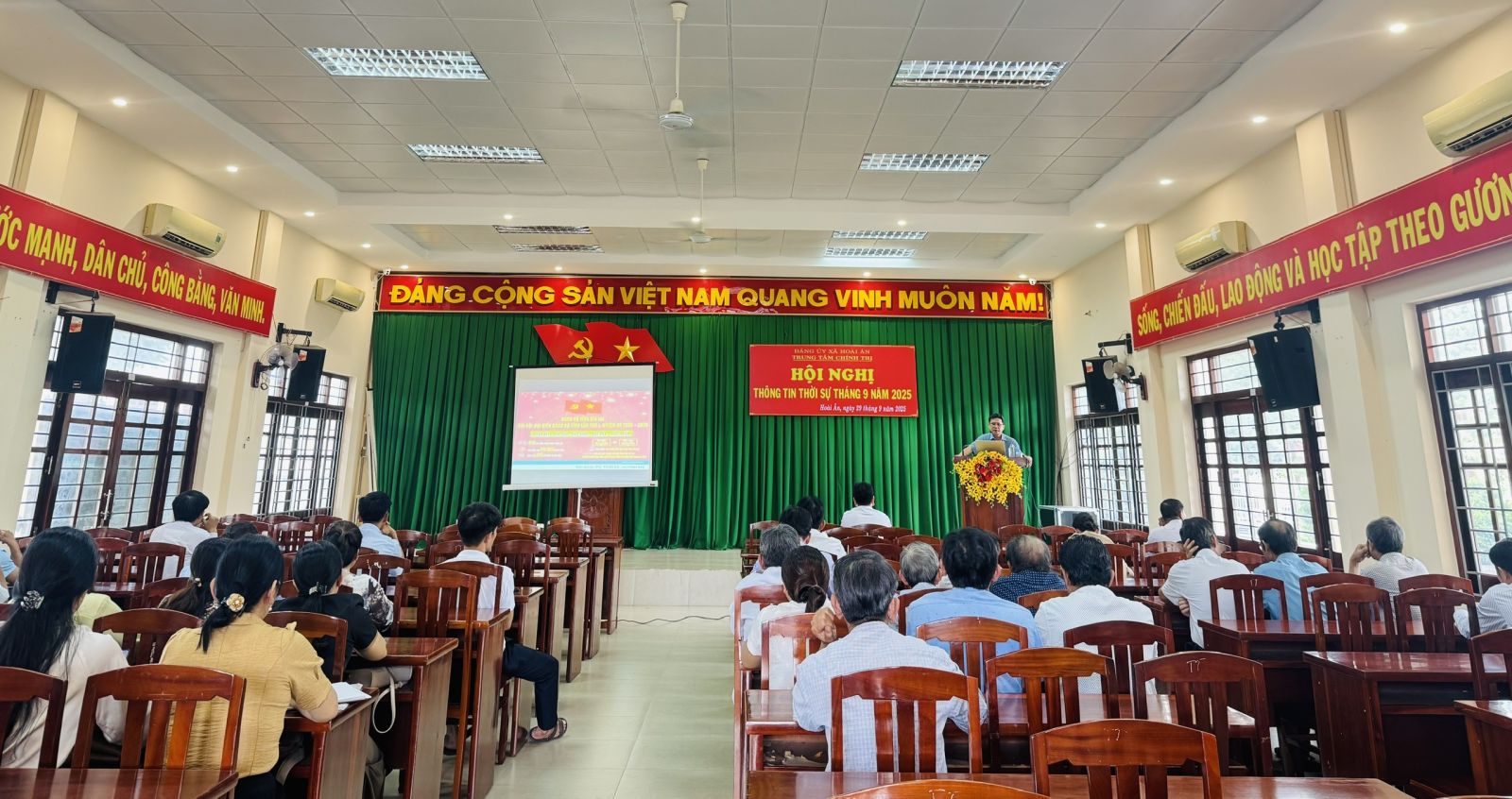 Chiều ngày 29/9, Trung tâm chính trị xã tổ chức Hội nghị thông tin thời sự tháng 9/2025. Tham dự Hội nghị có đồng chí Trần Duy Khánh - UV BTV, Trưởng Ban xây dựng Đảng xã; cùng 59 Bí thư, phó bí thư chi, đảng bộ trực thuộc đảng bộ xã.