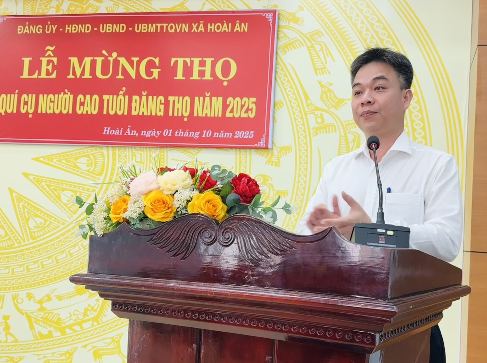 Phát biểu tại buổi lễ, các đồng chí Trần Anh Hoàng Vũ – PCT UBND xã đã bày tỏ lòng biết ơn sâu sắc và gửi lời chúc sức khỏe, trường thọ, sống vui - sống khỏe - sống có ích tới các cụ cao niên. Đồng chí khẳng định: Người cao tuổi là chỗ dựa tinh thần quý báu cho con cháu, là nhân chứng lịch sử, là tấm gương mẫu mực trong cộng đồng, gia đình và xã hội.